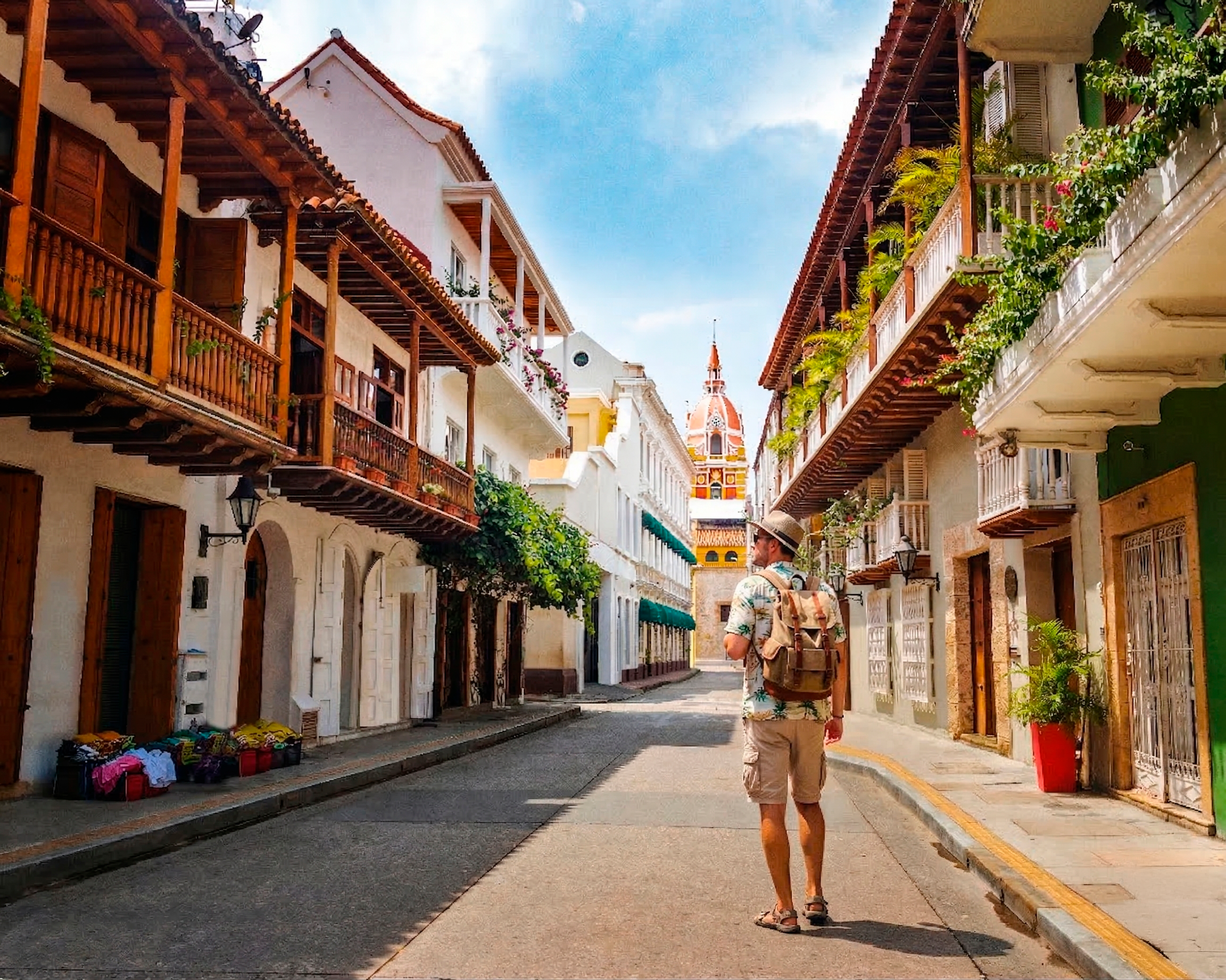 La experiencia se enriquece recorriendo el corazón del centro histórico, donde plazas emblemáticas como la de la Aduana, la Torre del Reloj y la plaza de los Coches revelan el pasado comercial y cultural de la ciudad. El aroma del café colombiano y la tradición del tabaco acompañan el recorrido por calles llenas de vida, hasta llegar a la animada plaza de Santo Domingo. También contarás con tiempo libre para explorar a tu ritmo, relajarte o simplemente dejarte llevar por el ritmo cálido de Cartagena antes de tu regreso.